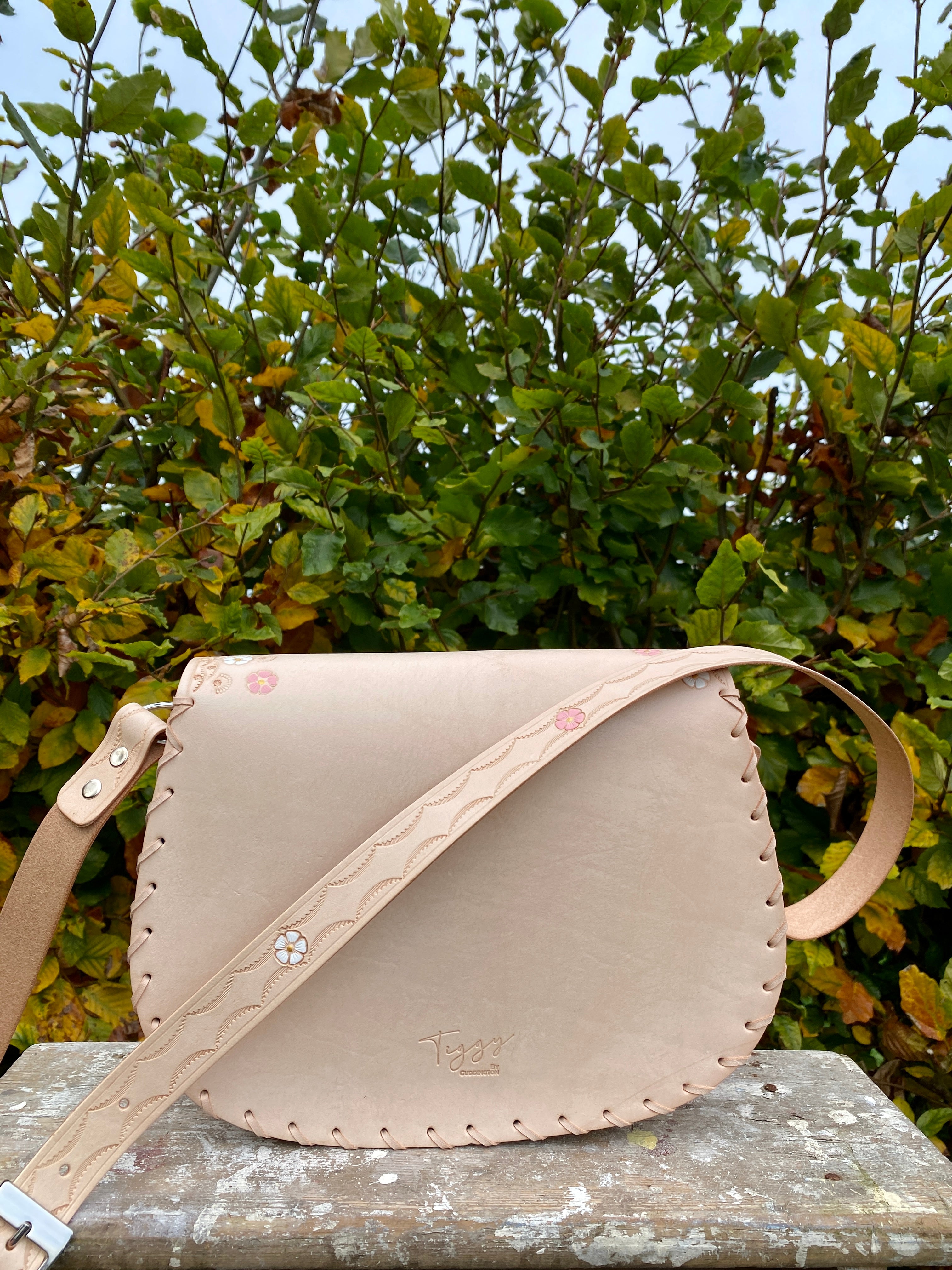 Each piece has been carefully hand-cut, hand-dyed, hand-tooled and hand-painted by the family bussiness of Tiggy by Cuddington. With this nature of manufacturing you may find variations as no two pieces are alike. One of One - Celebrate uniqueness!