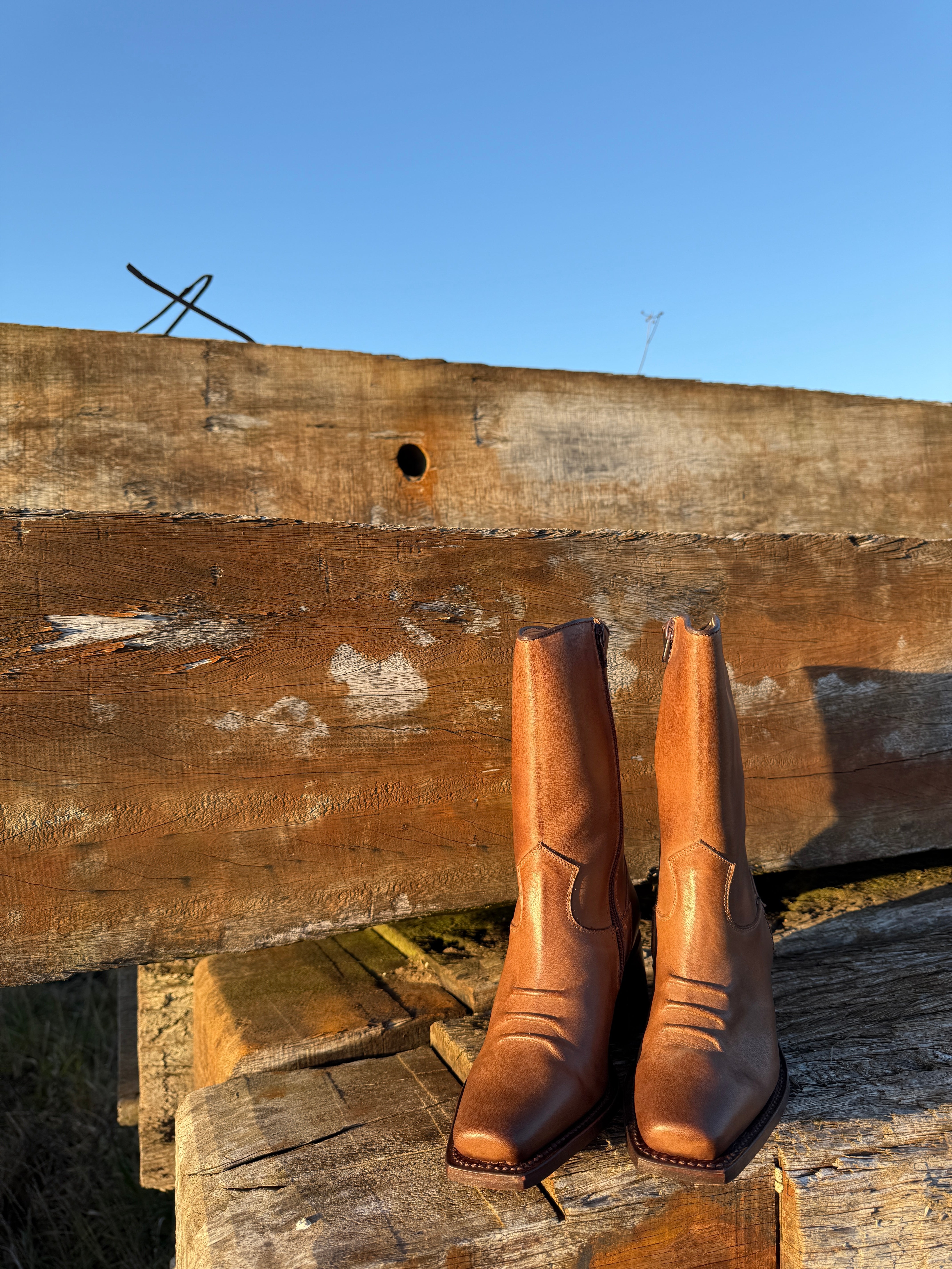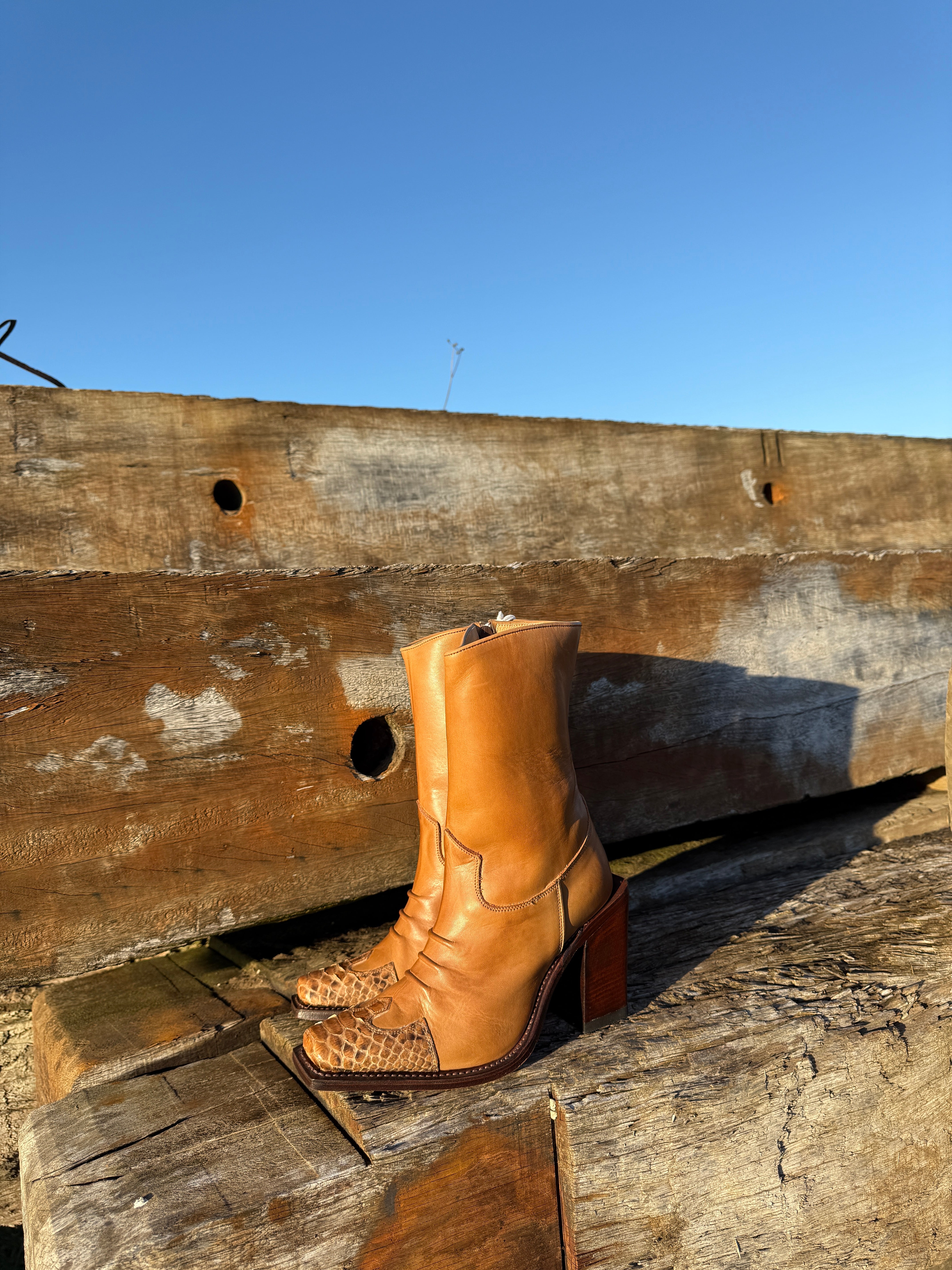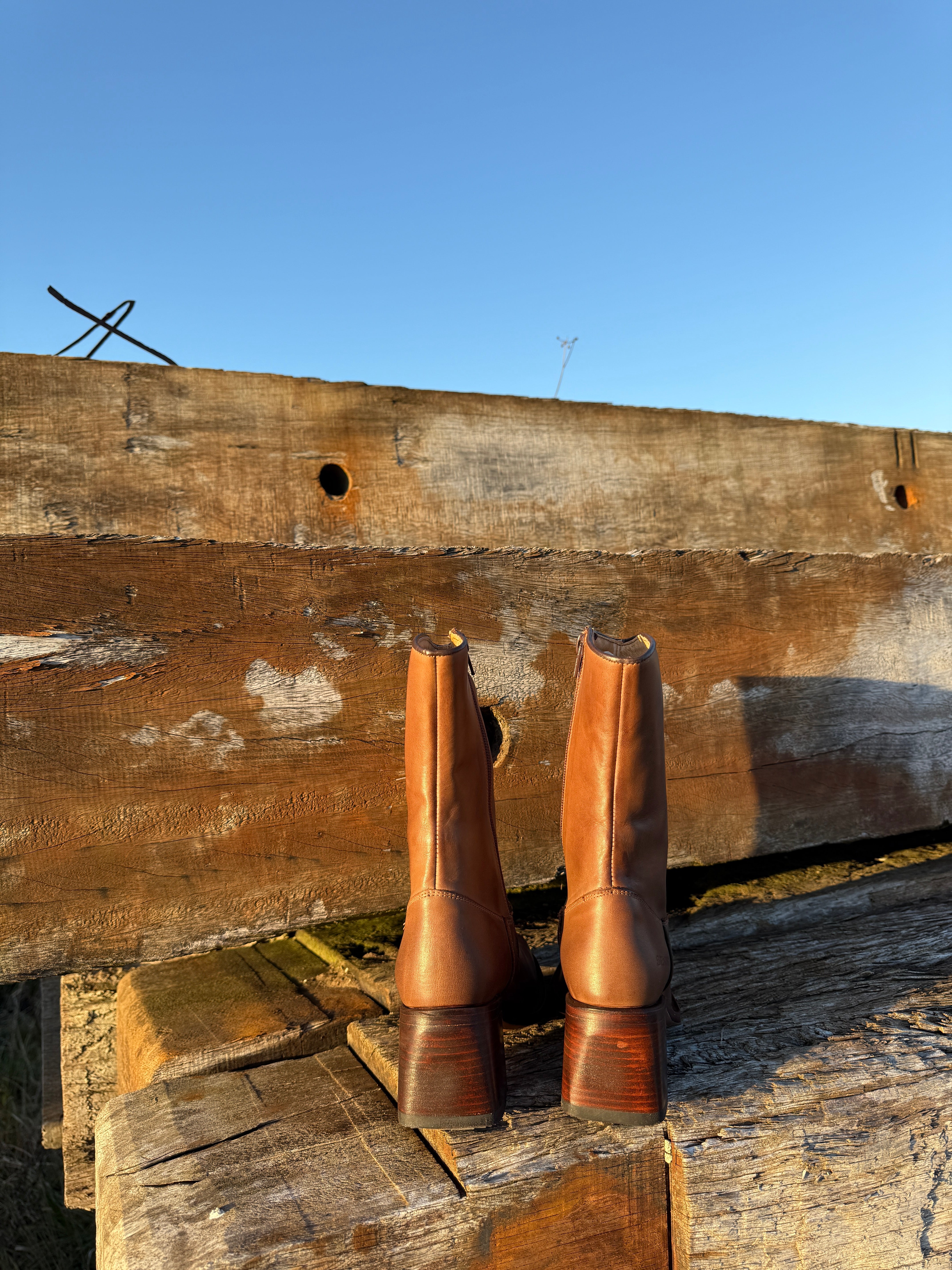 Block Heel Ankle Boot in Saddle Tan - Deadstock