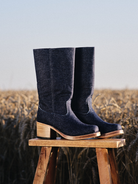 Haal je innerlijke plattelandskern naar boven met Dandelie's Chunky Boots in Denim! Een gewaagde knipoog naar western roots en barncore chic, verpakt in zacht denim met stoere charme. Deze halfhoge laarzen voor dames geven een unieke draai aan een klassiek silhouet. Geïnspireerd door schuurdagen, open luchten en rustige ochtenden op het platteland, zijn ze gemaakt voor vrouwen die zich met ziel kleden en doelgericht te werk gaan.