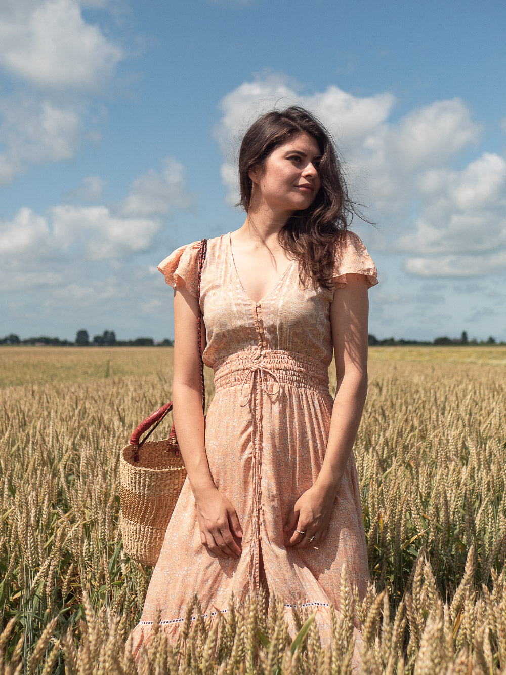 Het model is maat S/M en 173 cm lang. Ze draagt ​​maat S/M