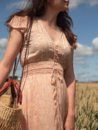 Maak je klaar met deze zomerjurk. Het is handgemaakt in Bali van het fijnste rayon. De achterkant van de jurk is langer en heeft een elastische taille. Het wordt geleverd met een gratis scrunchie, YAY!