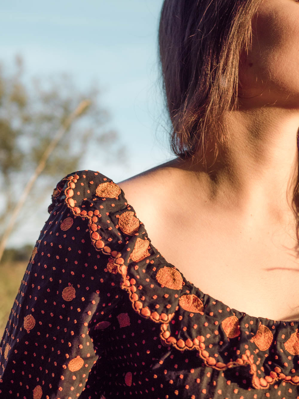 • Jeanne is 173 cm lang en draagt ​​maat S/M