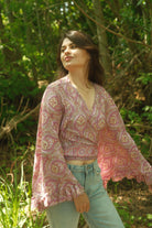 Een unieke gebloemde overslagtop van lichtgewicht, zacht zijden materiaal en klokmouwen. Je kunt deze top omwikkelen zoals jij je prettig voelt! We hebben een paar manieren laten zien, maar er zijn zoveel meer manieren. Combineer 'm met een van onze bijpassende rokken!