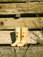 Het leer heeft een unieke polish met subtiele glans en rijke textuur voor die geliefde vintage look. Fijne, vakkundige borduursels geven een elegante finishing touch. Of je nu gaat voor een seventies muze, een bohemian of cowgirl vibe, of gewoon een opvallend stuk zoekt voor je garderobe, deze laarzen brengen karakter met kwaliteit op erfstuk niveau.