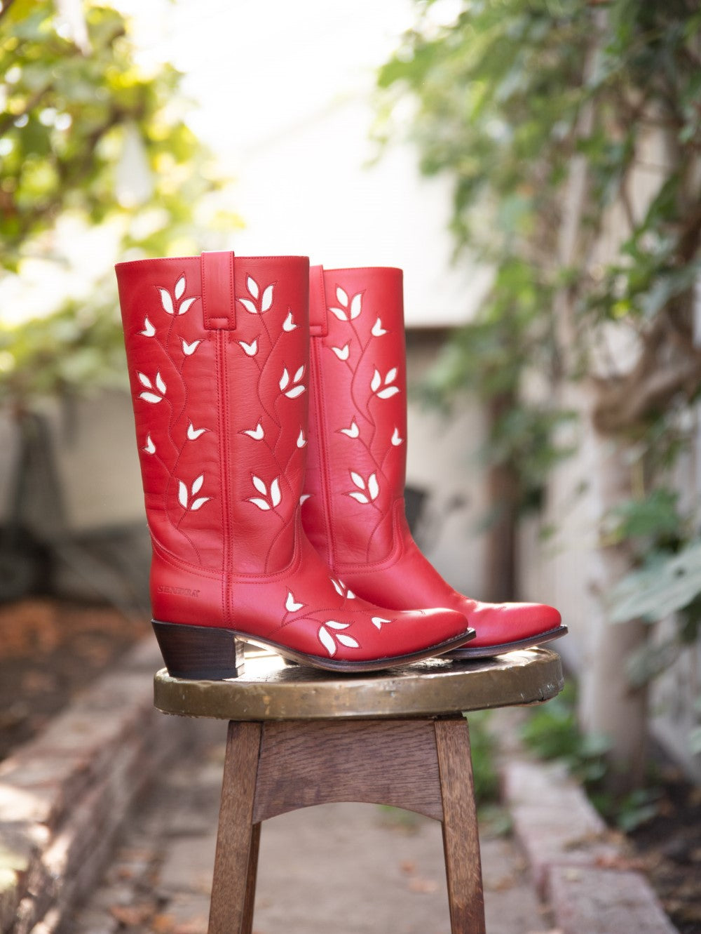 Play with your unique floral flair! Add a vintage and feminine flair to your rare style and make a statement wherever you go with our stunning flower boots. These retro and boho-chic leather boots for women are the perfect addition to elevate your cottagecore outfits, offering a whimsical touch that complements your natural, rustic look. If you're embracing the cowgirl aesthetic, our flower western boots for ladies bring that perfect blend of bold floral patterns and Western charm, making them a standout choice for your next adventure.
