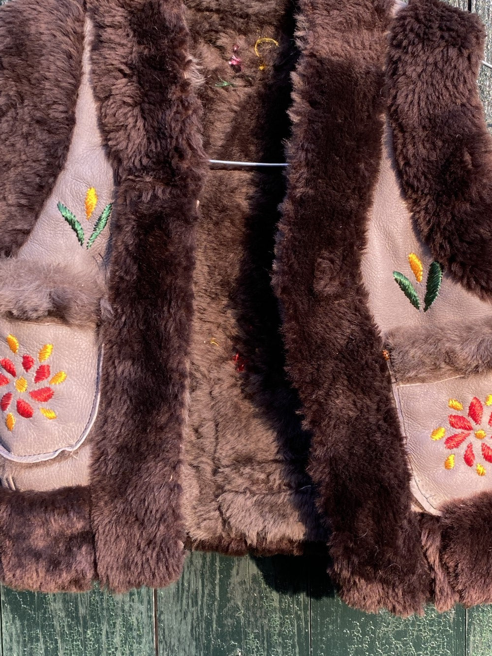 De vesten zijn gemaakt van schapenvacht van verschillende lokale schapenrassen. De meeste materialen zijn restanten van de vleesindustrie. Zo proberen we duurzaam te blijven. De jassen zijn handgemaakte, unieke en one-of-a-kind items. Omdat elk item echter individueel met de hand wordt gemaakt en gemaakt met natuurlijke materialen, kunnen er kleine inconsistenties zijn tussen de items.