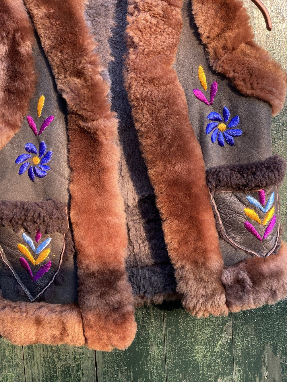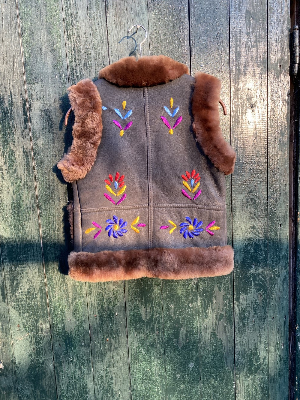 De vesten zijn gemaakt van schapenvacht van verschillende lokale schapenrassen. De meeste materialen zijn restanten van de vleesindustrie. Zo proberen we duurzaam te blijven. De jassen zijn handgemaakte, unieke en one-of-a-kind items. Omdat elk item echter individueel met de hand wordt gemaakt en gemaakt met natuurlijke materialen, kunnen er kleine inconsistenties zijn tussen de items.