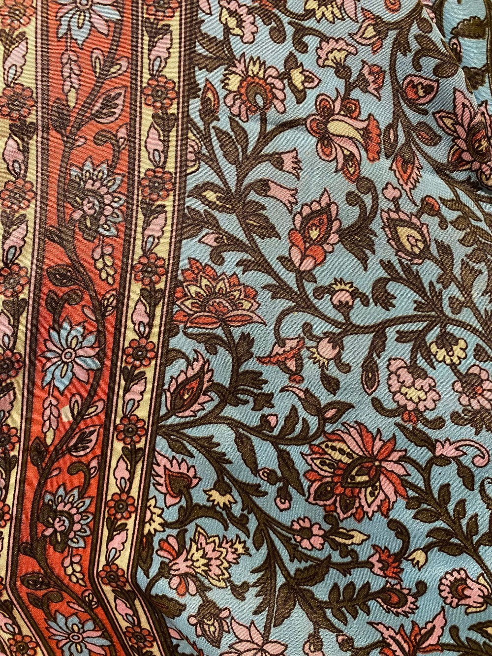 Een unieke kimono met bloemenprint van lichtgewicht zacht zijdemateriaal en klokmouwen. Draag hem open of wikkel hem met de riem. Een optionele gesloten knoop langs de buste zorgt voor een meer ingetogen versie.