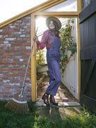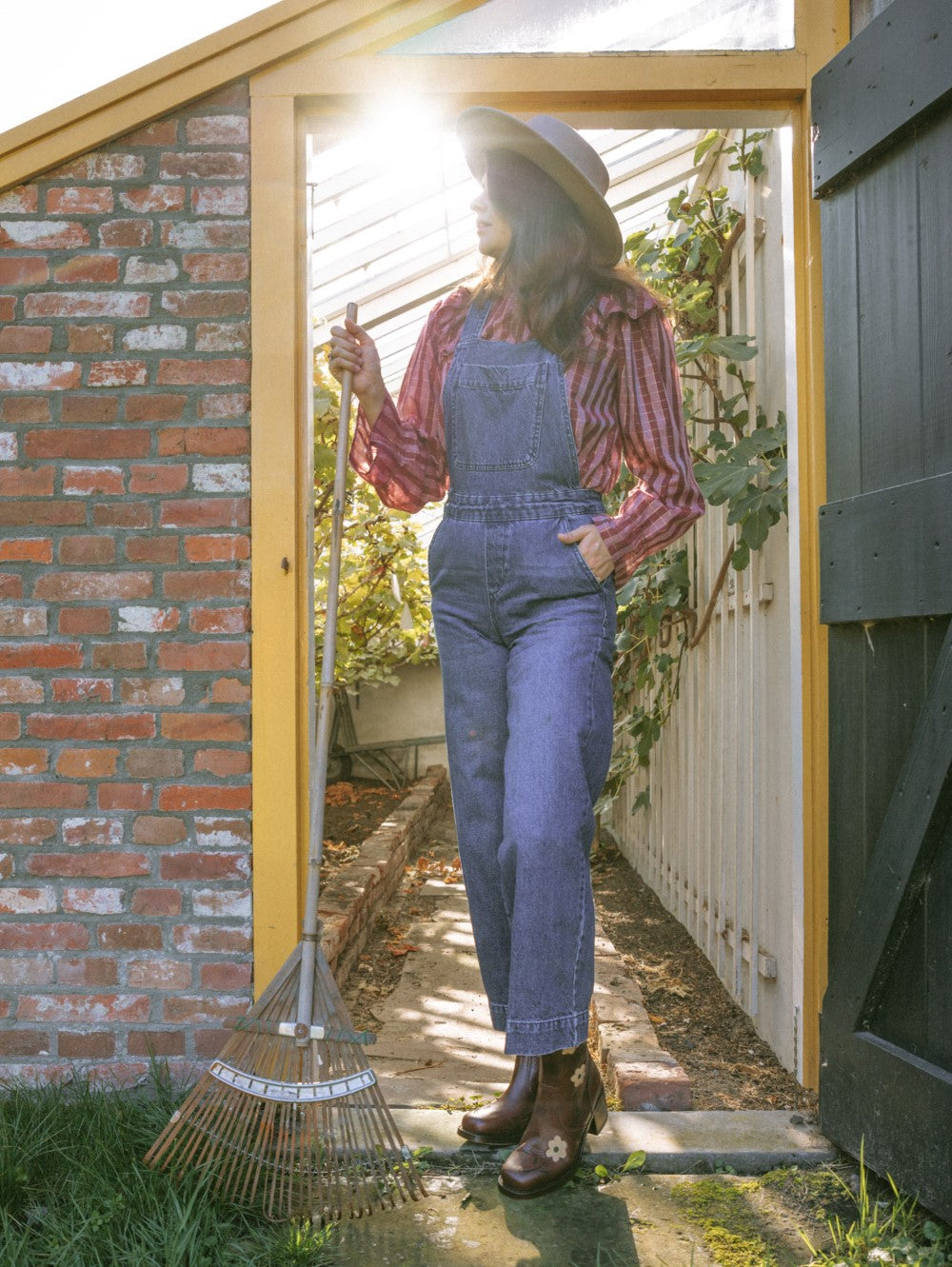 Een deadstock denim overall met een iets cropped lengte, een pronkstuk in combinatie met onze boots!