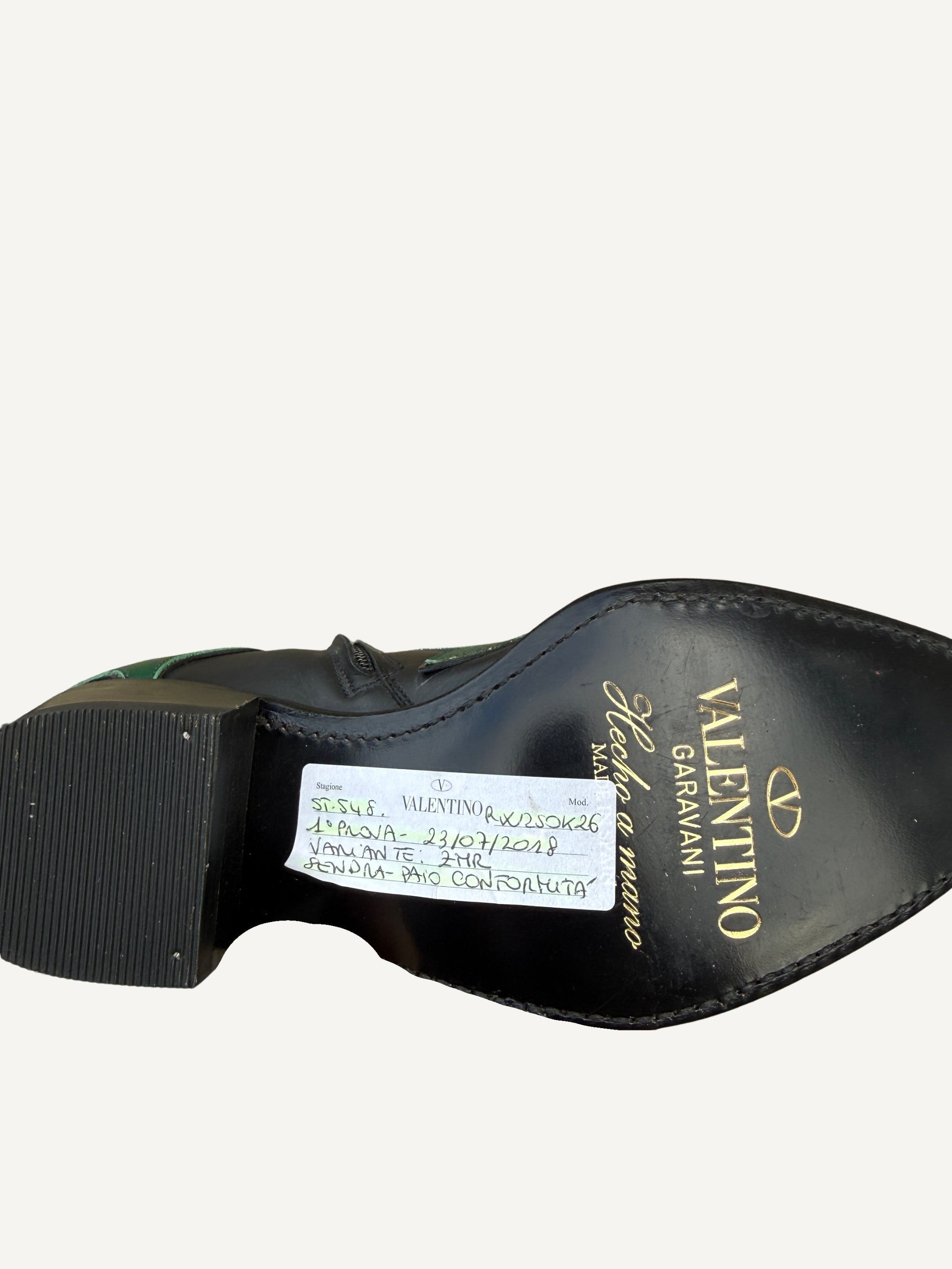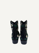 A western boot with runway energy. Original Valentino Garavani Ranch boots in black leather, finished with floral embroidery that brings the romance all over. The silhouette stays sleek and sharp, balancing statement detail with an easy, wearable attitude. Retail price is $1675.
