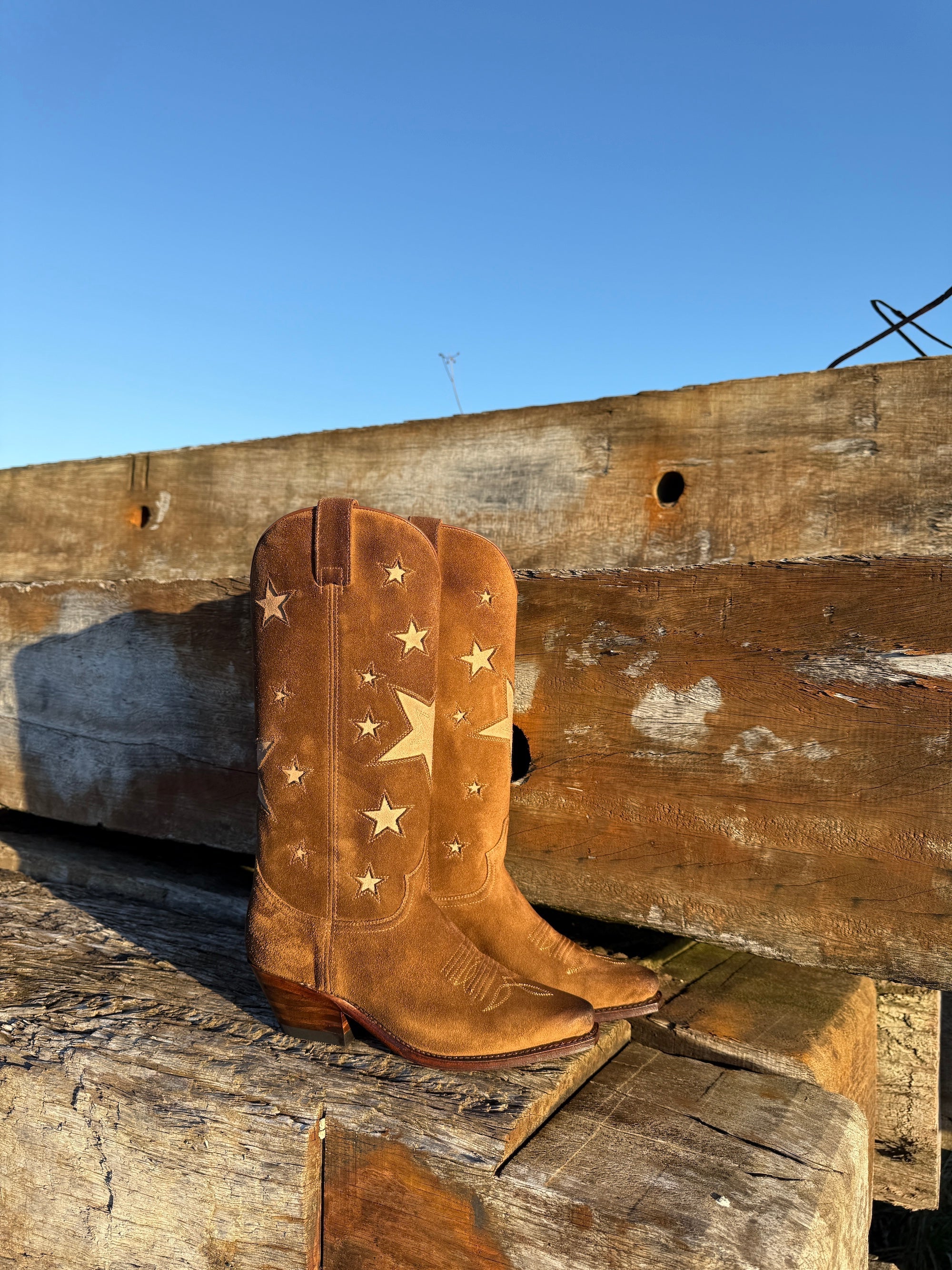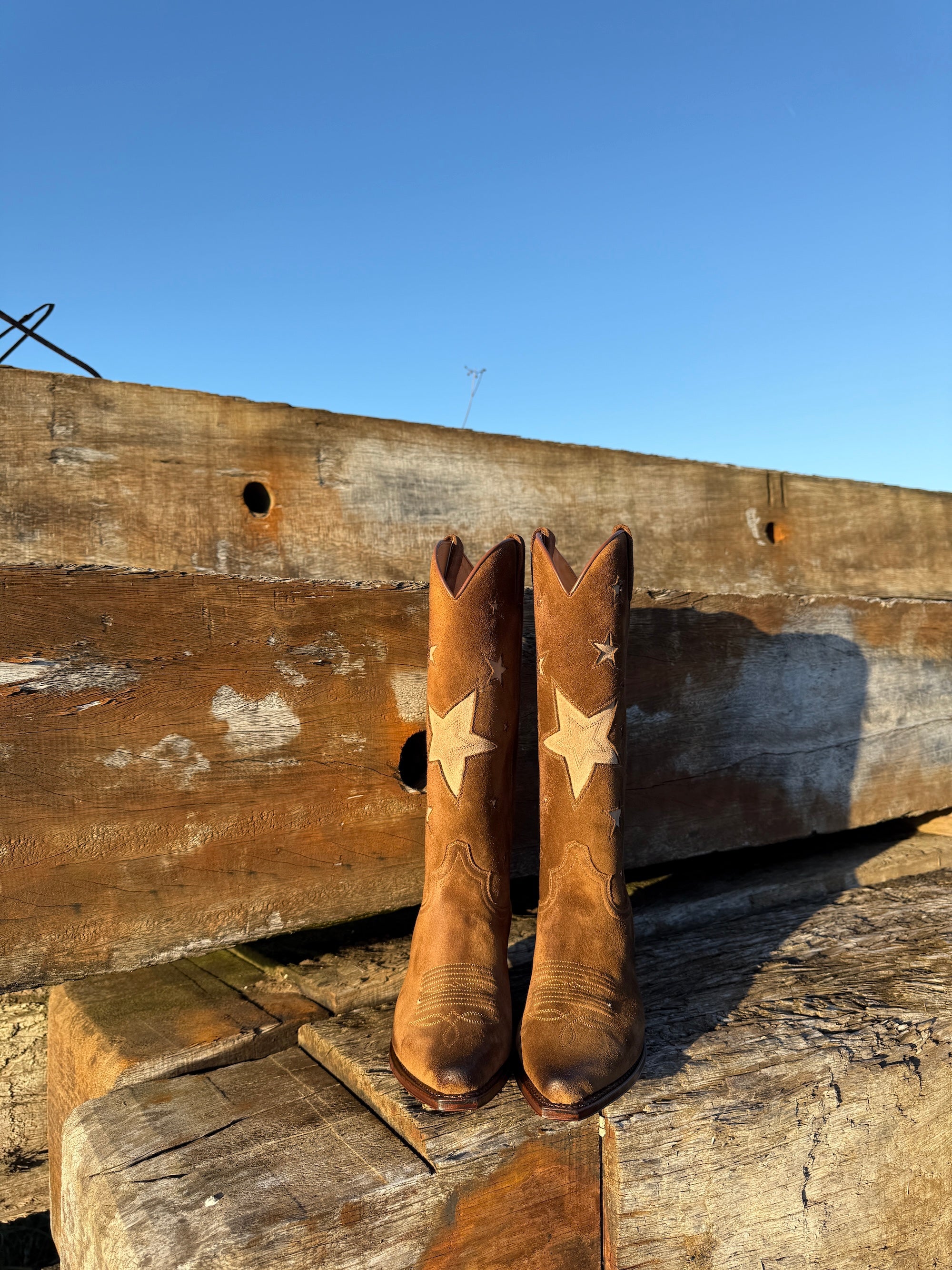 Sendra bruine suede laarzen met beige sterren.