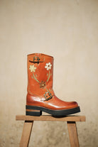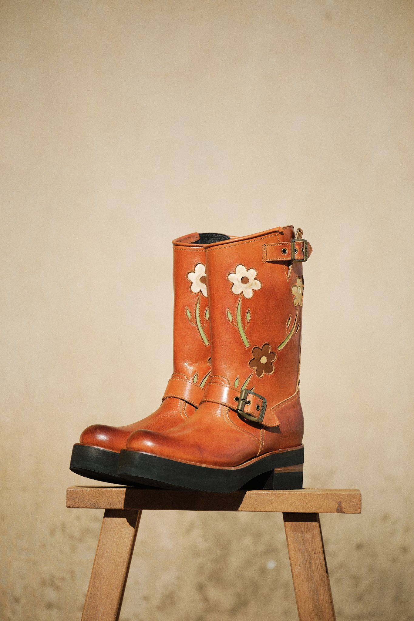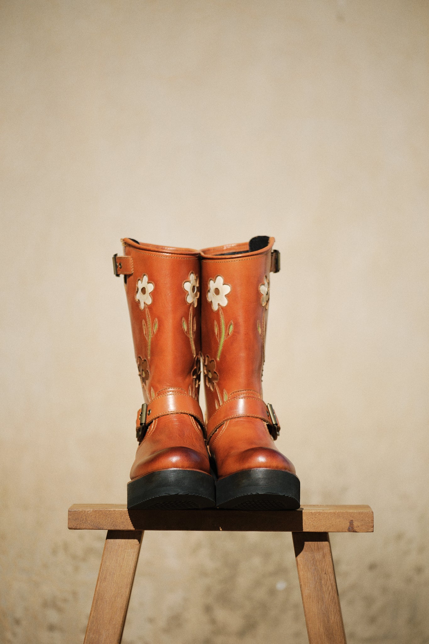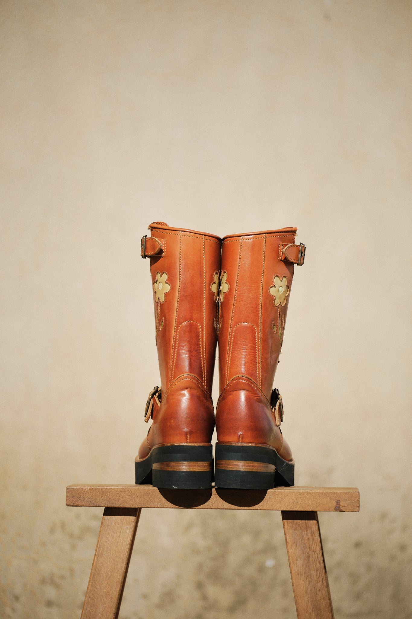 A love child of Flower Boots and Biker Boots. Gentle, feminine, confident, and assertive. Pairs beautifully with various clothing styles, allowing you to experiment. Only one pair is available.