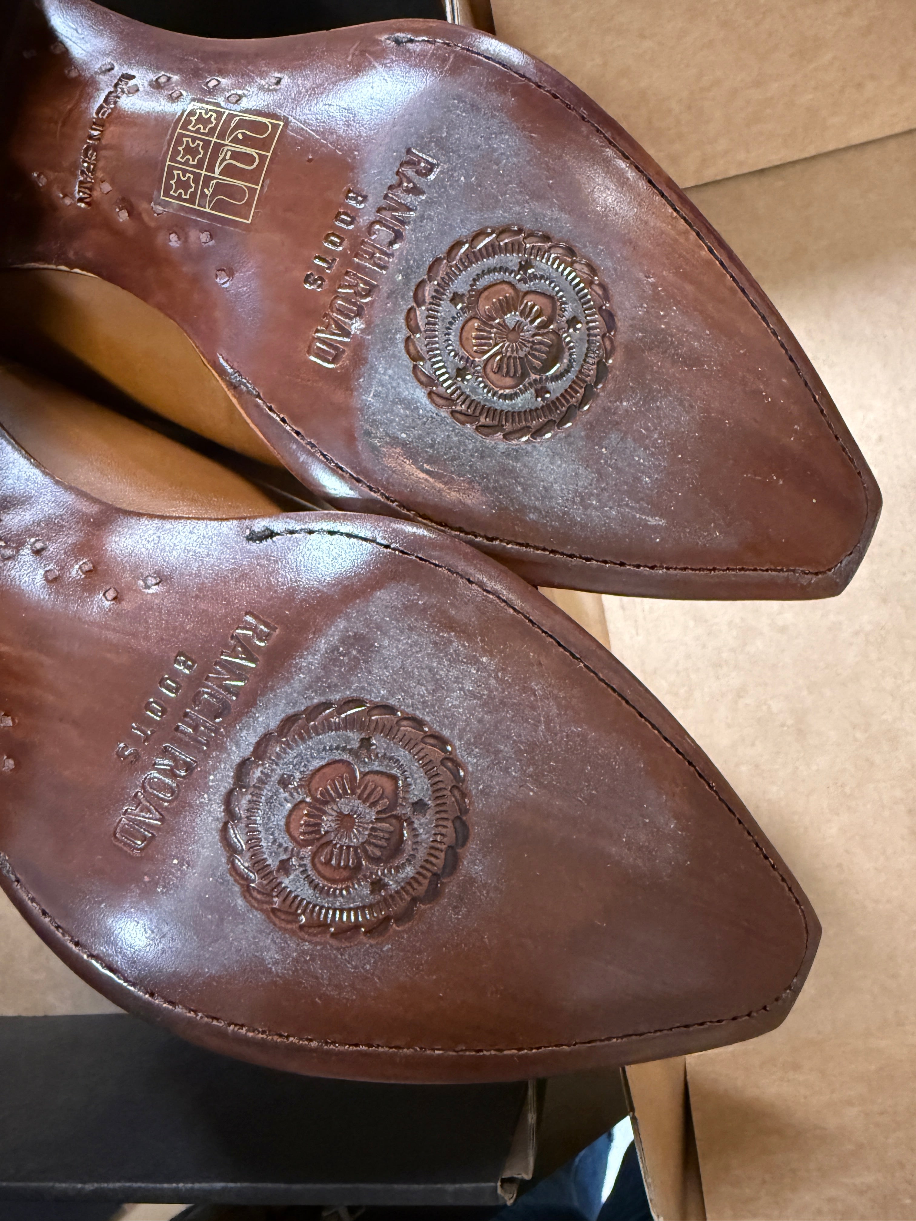 Starry accents and brown leather give this Western ankle boot easy everyday appeal. Handcrafted in Spain with premium craftsmanship for comfortable wear. Only one pair is available.