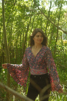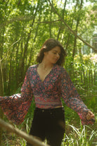 Een unieke gebloemde overslagtop van lichtgewicht, zacht zijden materiaal en klokmouwen. Je kunt deze top omwikkelen zoals jij je prettig voelt! We hebben een paar manieren laten zien, maar er zijn zoveel meer manieren. Combineer 'm met een van onze bijpassende rokken!