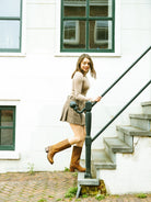 Of je ze nu combineert met een midi-jurk of een spijkerbroek, deze stevige bruine laarzen voor dames zijn veelzijdig en comfortabel en passen in elke garderobe.