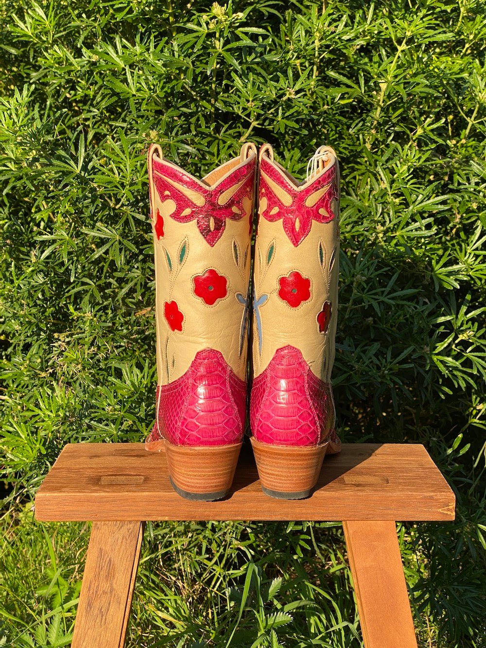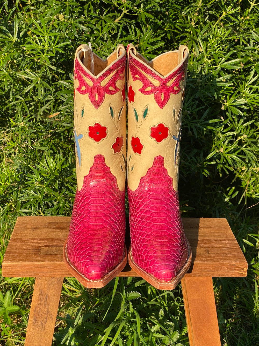 This is your last opportunity to claim these deadstock pink python boots—once this final pair is sold, they’ll never return. Don’t miss out on this rare, fashion-forward piece of Western artistry.