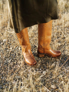 Perfect te combineren met denim, vintage rokken of soepele prairiejurken, de Stitching Taurus laarzen geven je outfit een retro western-achtige basis met moderne verfijning. Van uitstapjes naar het platteland tot stedelijke stijl, ze zijn een opvallend statement piece dat eindeloos veelzijdig aanvoelt. Afgewerkt met een Goodyear-zoolconstructie en een leren buitenzool, zijn deze laarzen gemaakt om lang mee te gaan en je te vergezellen, seizoen na seizoen. Dandelie's Stitching Taurus laarzen in Saddle Tan zijn meer dan alleen laarzen, ze zijn een uiting van geaarde vrouwelijkheid, speciaal gemaakt voor de vrouw die een beetje wild in haar gang gaat!