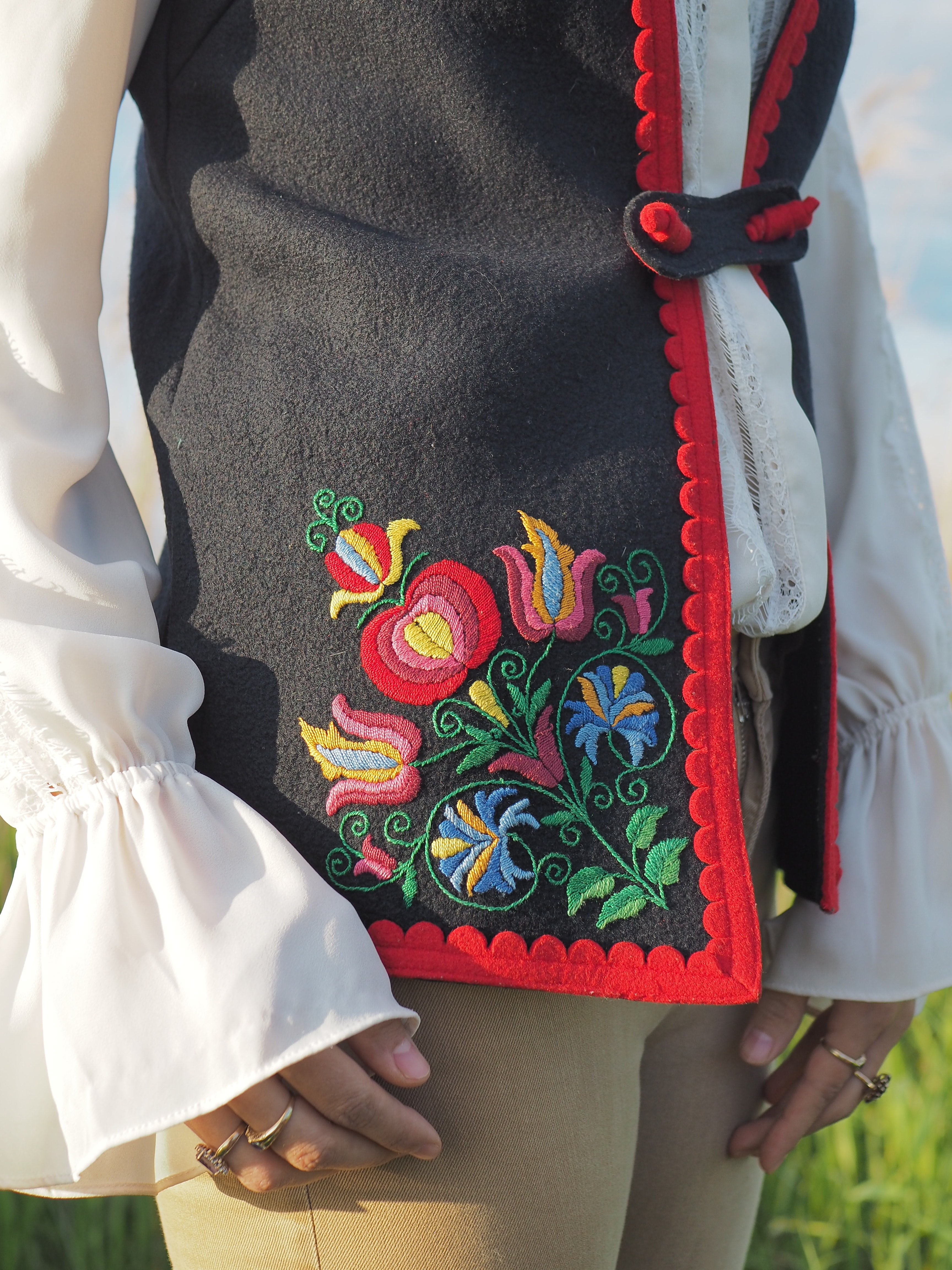 Vintage wollen geborduurd gilet uit Oost-Europa