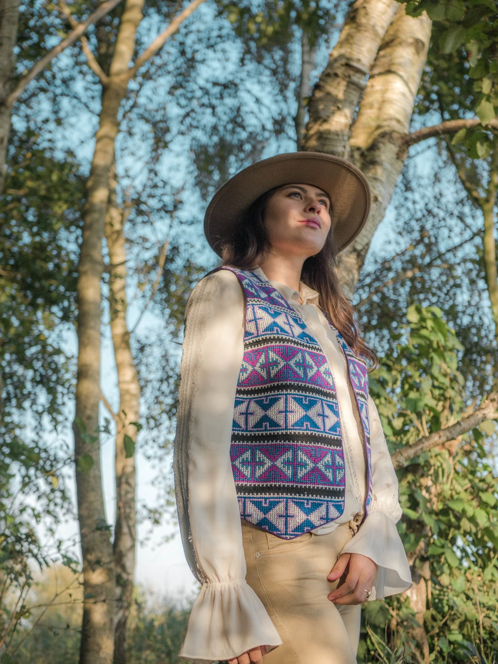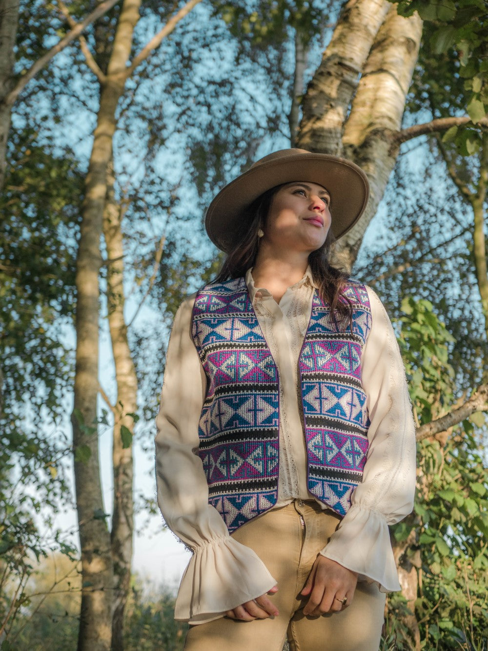• Jeanne is 173 cm lang en draagt ​​maat S/M
