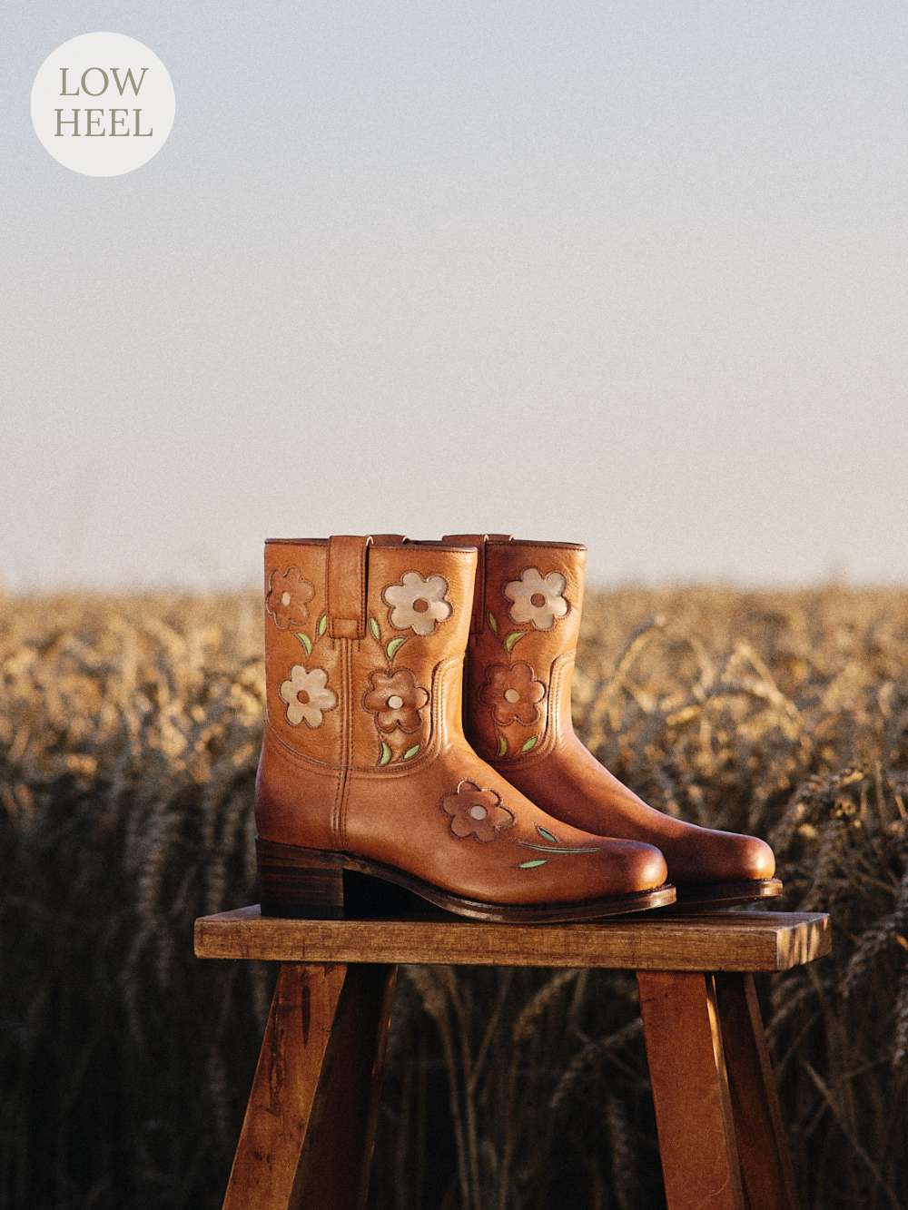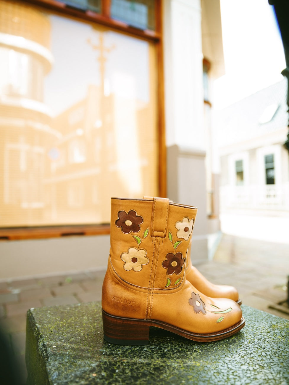 Sendra Bloemen Enkellaarsjes in Amandel Bruin