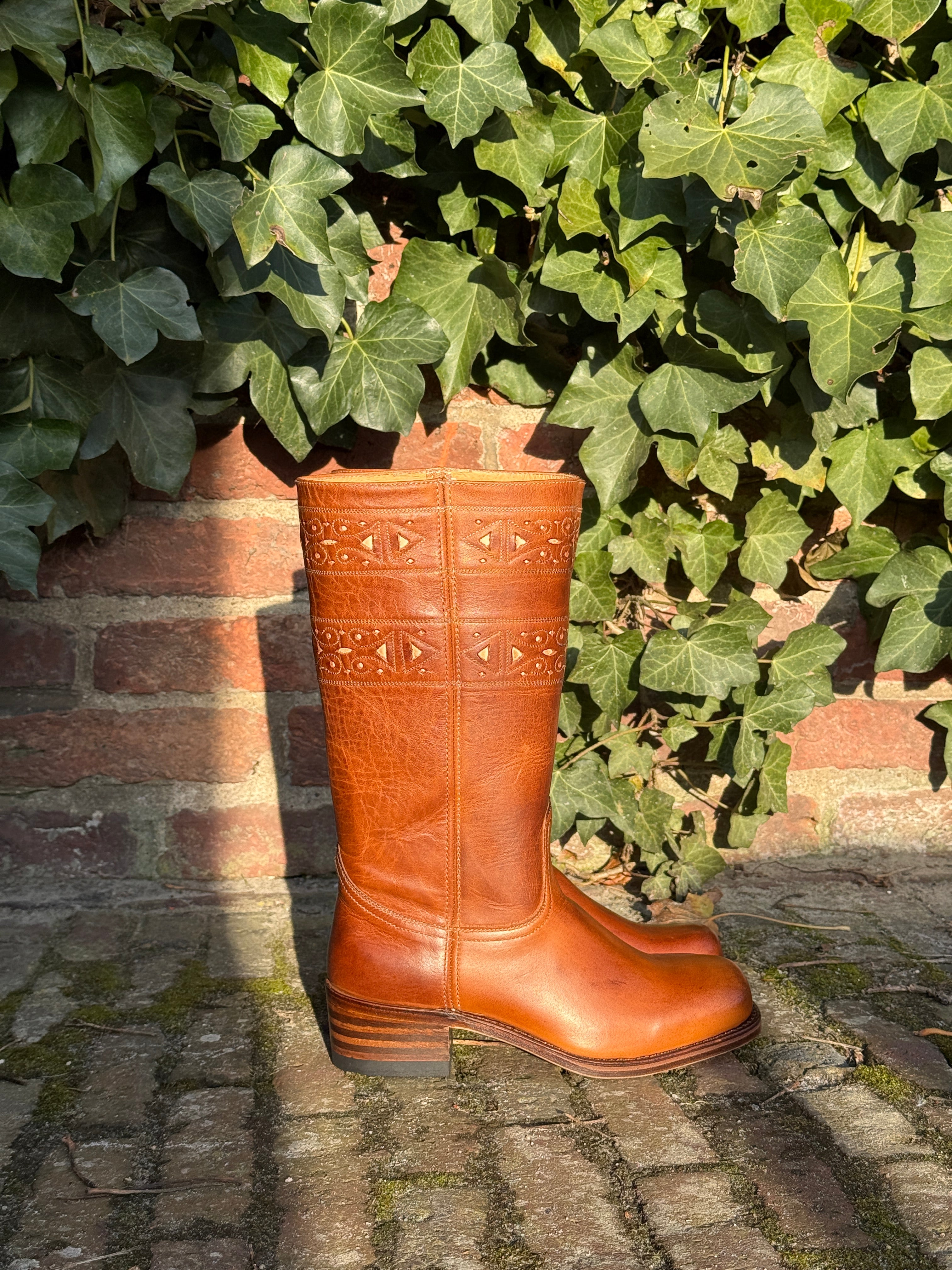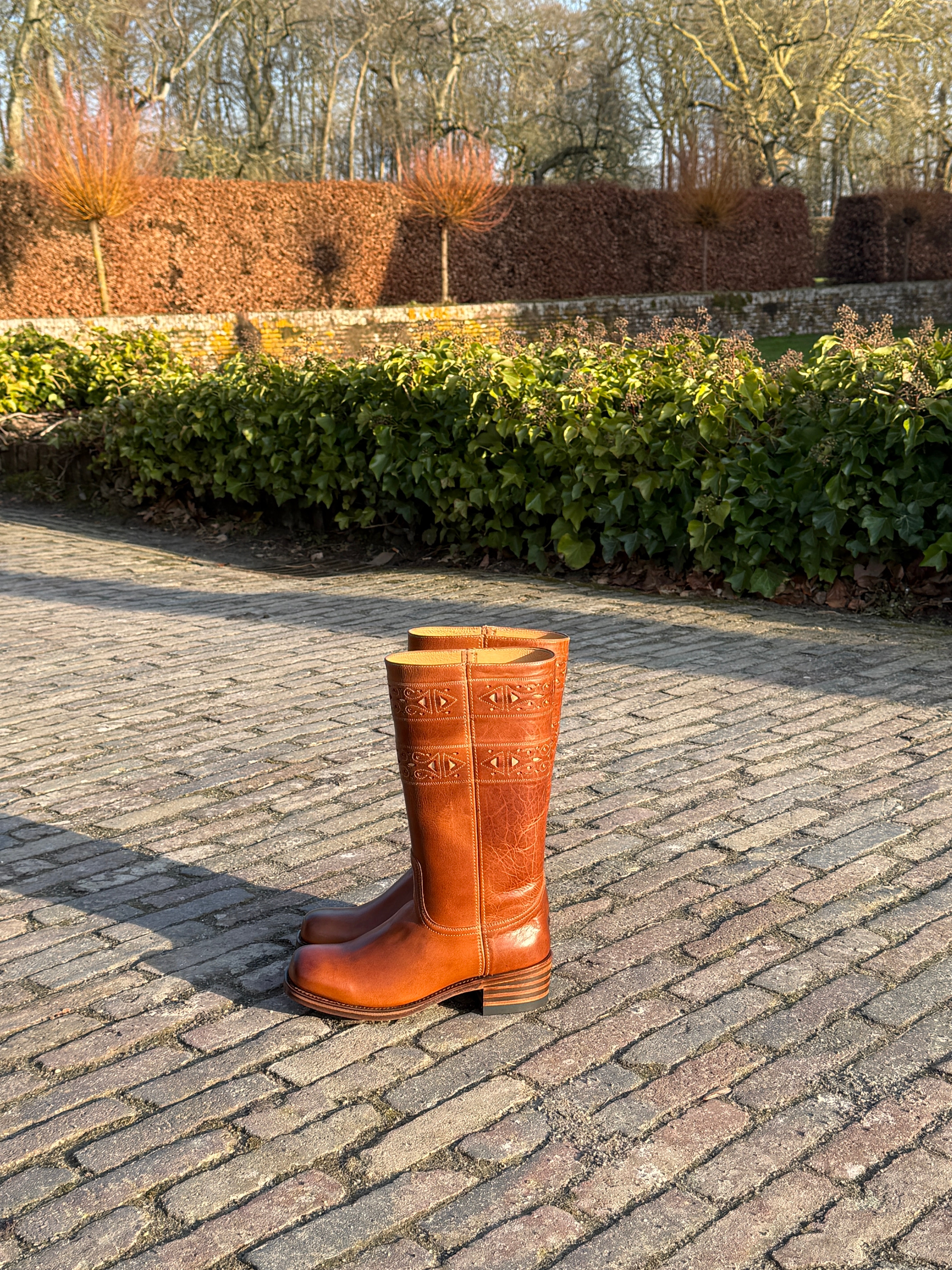 Het zijn laarzen van 100% rundleer, het leer zal in het begin wat hard zijn, maar zal zich naar je voeten vormen. Daarom is het beter om strakke laarzen te hebben (ze zullen zich naar je voeten vormen) dan laarzen die altijd te groot zullen zijn!