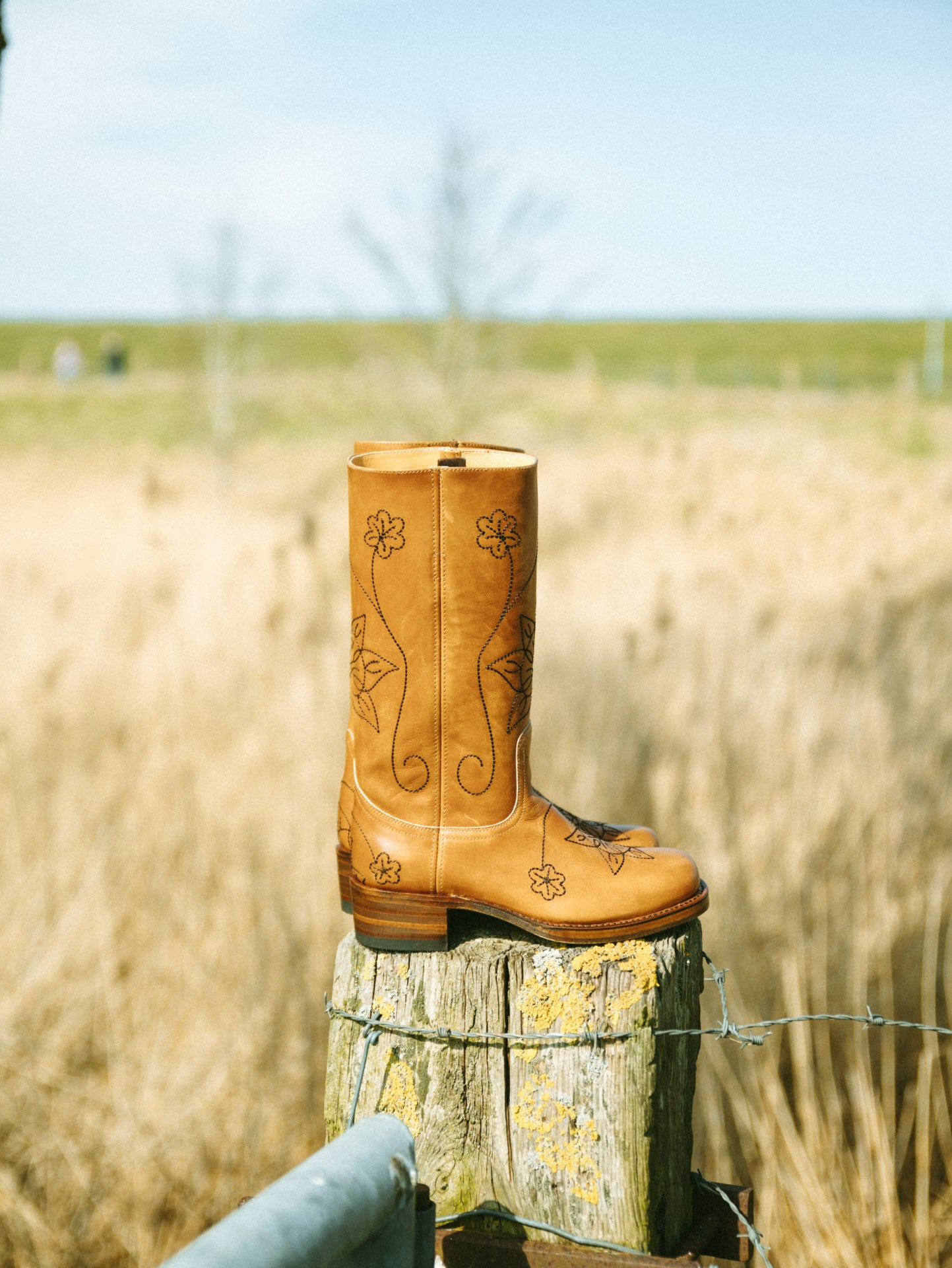De Floral Chunky Boots van Dandelie in bruin zijn voor vrouwen die houden van mode met een verhaal. Romantisch, stoer en verfijnd. Van vintageliefhebbers tot moderne cowgirls, het zijn de perfecte laarzen om je outfit te gronden en je outfit van de dag te verfraaien! Altijd groen, luxueus en moeiteloos poëtisch: deze bruine leren laarzen met bloemenprint voor dames zijn gemaakt voor dagdromers die het aandurven om eropuit te trekken.
