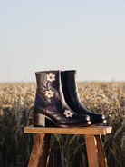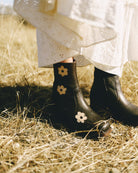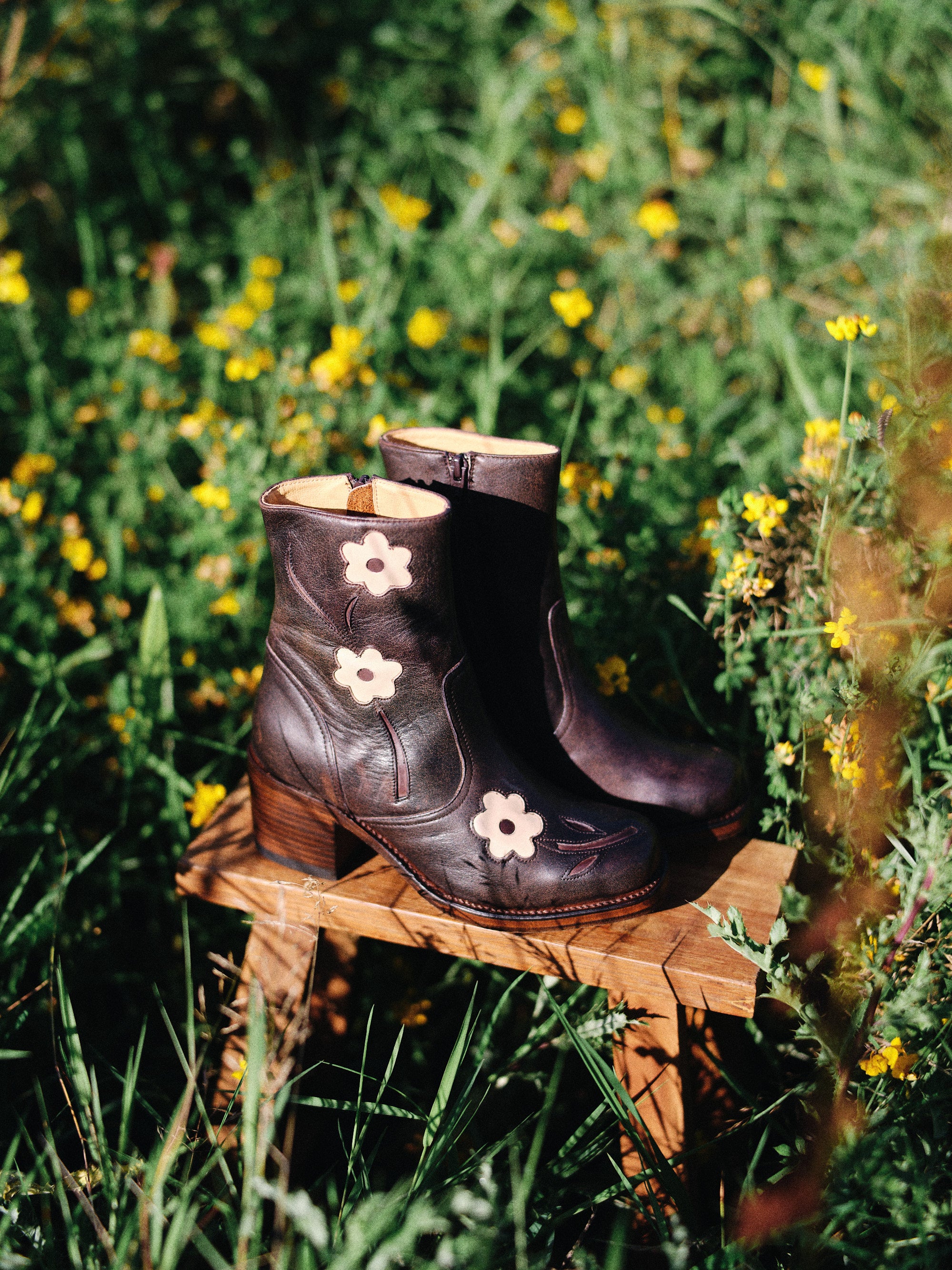 Deze bloemen laarzen in donkerbruin worden handgemaakt in Spanje. Onze laarzen zijn gemaakt van het fijnste leer en zullen zich na verloop van tijd aanpassen en vormen om perfect aan je voeten te passen. Onze laarzen passen bij elke stijl, of je nu een vintage babe uit de jaren 70 bent, een Bohemian soul, een western cowgirl of gewoon je stijl wilt opfleuren! Deze laarzen zijn een statement, investeringsstuk dat elke outfit naar een hoger niveau zal tillen.